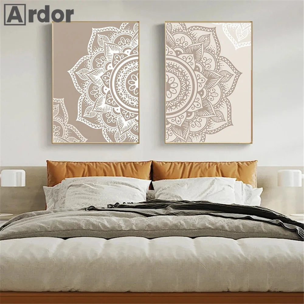 A serene five-panel canvas collection that weaves together intricate mandalas, delicate floral motifs, and graceful Moroccan arches — creating a harmonious focal point for contemplation and inner peace.