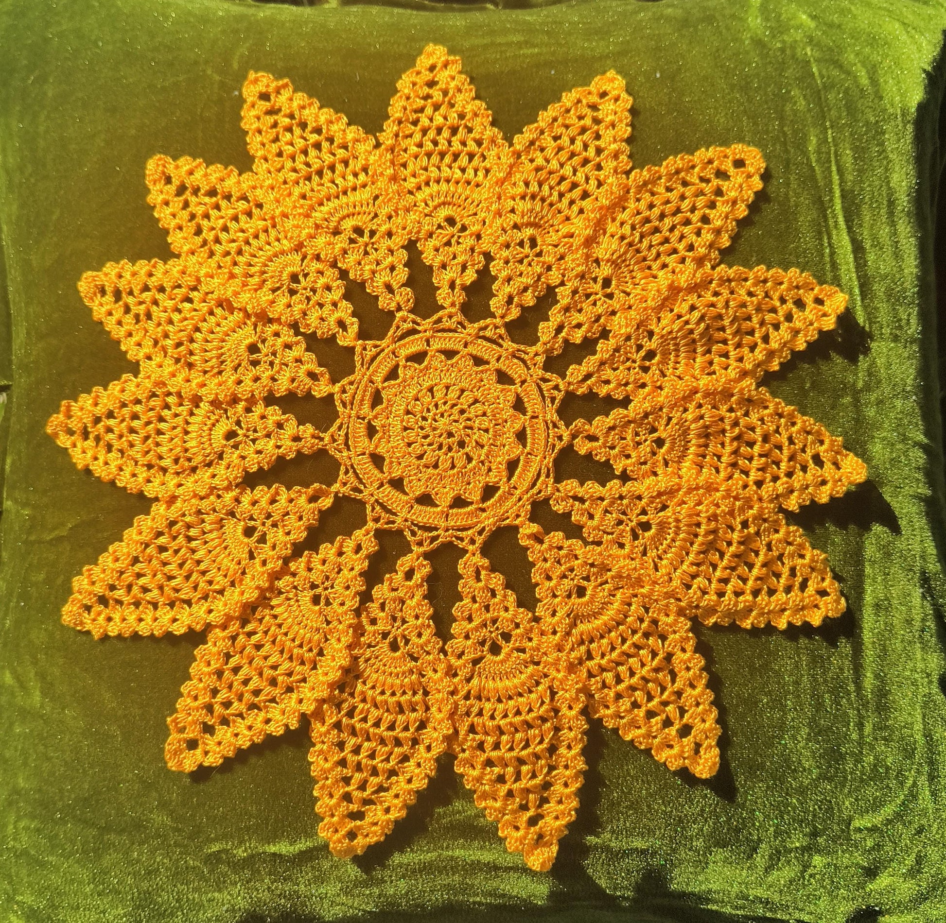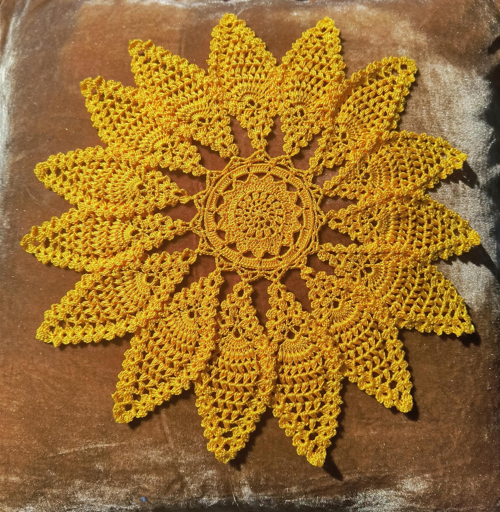 Materials (suggested): • Crochet thread in golden/sunburst shades (size 10–30 recommended) • Appropriate steel hook for your thread choice • Blocking tools (optional but recommended for crisp solar rays)